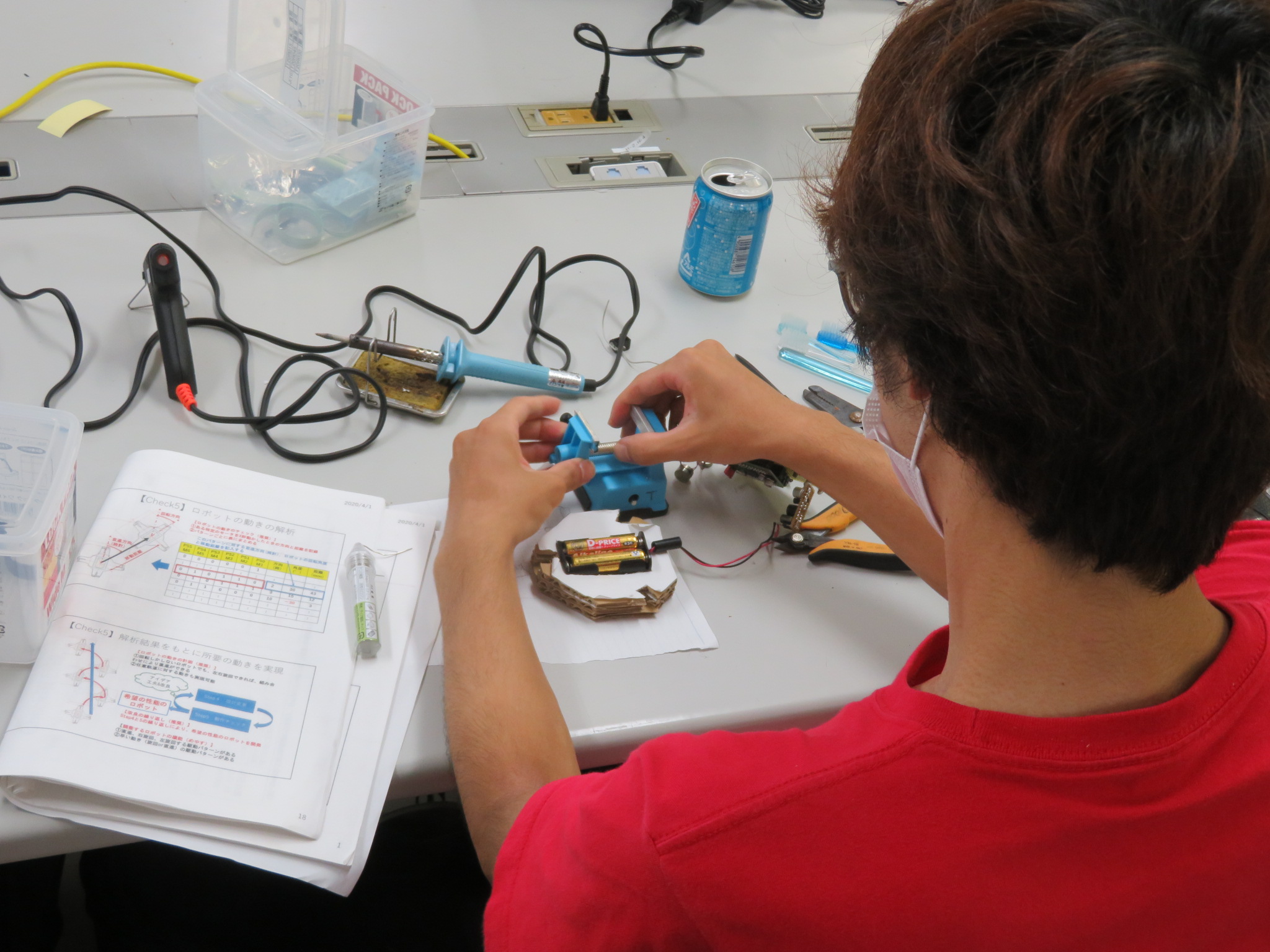 モータ駆動回路が完成したチームは、ロボットの筐体を設計するためにどのようなロボットが良いのかダンボールや発泡スチロールなど様々な素材でつくってみます。